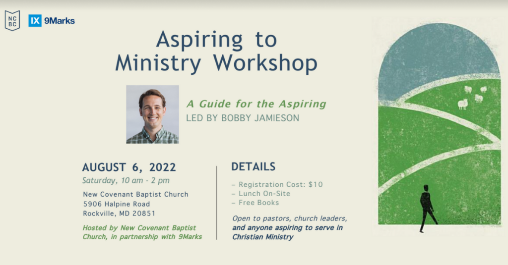 Join New Covenant Baptist Church for a Workshop on “Aspiring to Ministry”, in partnership with 9Marks to learn more about what it means to be a qualified ministry worker. Led by Bobby Jamieson, author of The Path to Being a Pastor: A Guide for the Aspiring and Associate Pastor at Capitol Hill Baptist Church.